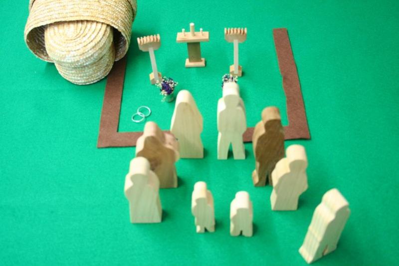 Additional materials for the Holy Matrimony Story. ADD these materials to Dick Gibson’s “Sunday Morning” materials for a complete Holy Matrimony story. Items in this set include: nine (9) figures (bride, groom, bridesmaid, groomsman, best man, two children, maid/matron of honor, father of the bride), long-stem candle stands, flower baskets, rings, unity candle stand, and two boxes.