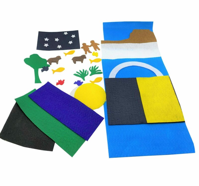 Create your own creation cards out of felt. All the pieces needed to put it together are included. (7 Felt Cards with a background underlay)