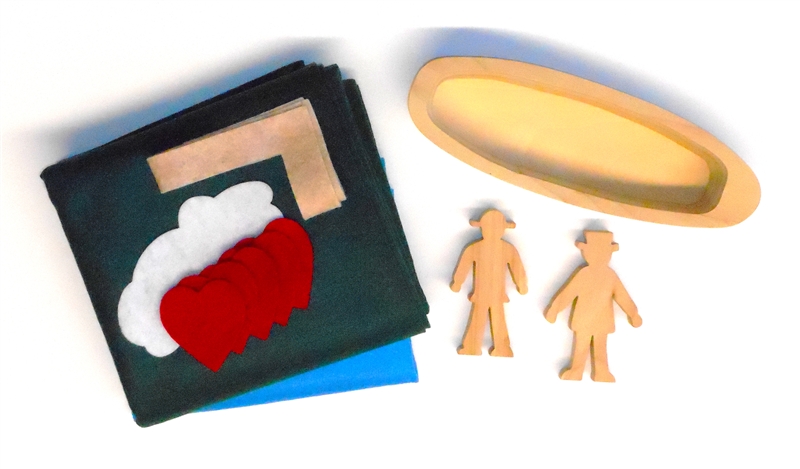 John Murray Coming to America is a wooden Godly resources & materials Bible story for Sunday school lessons, children’s Bible study, & religious education. The John Murray Coming to America story includes: 2 Wood Figures, Wood BoatFelt Underlay, and 2 Strips1 Felt Dream Bubble and 5 Felt Hearts, 1 Felt House, 16″ Tray