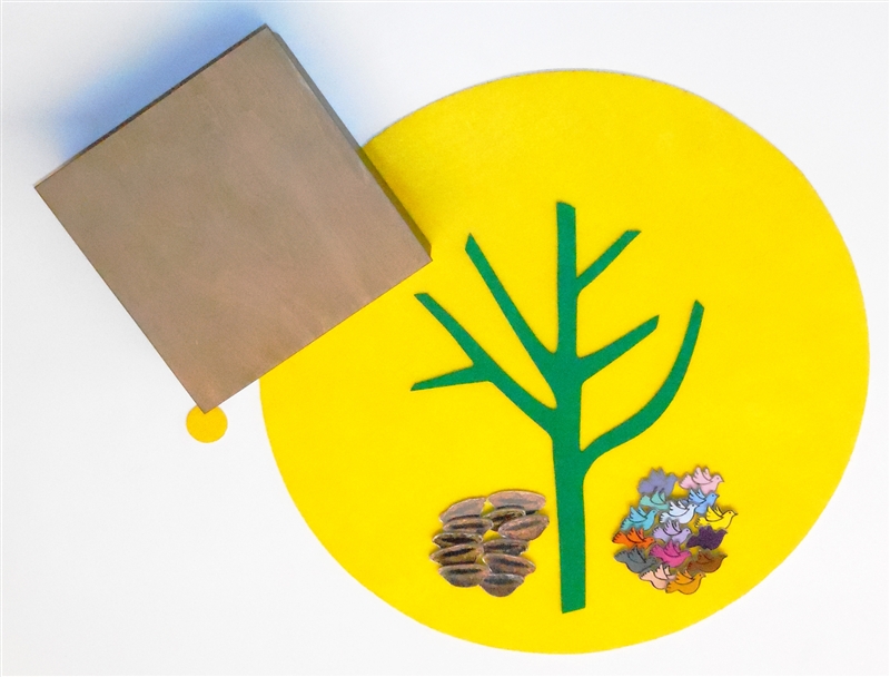 Mini Parable of the Mustard Seed Includes: Mini Gold Parable Box measuring 7.5″ x 7.5″ x 3″, Mini Characters mounted on wood, Container, Mini Underlay, Small Box for very small pieces.