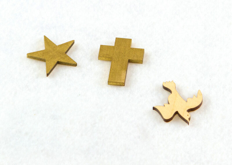 Dimensions: Approximately 1.5″ x 1″ Cross & Star painted gold, Dove is unpainted